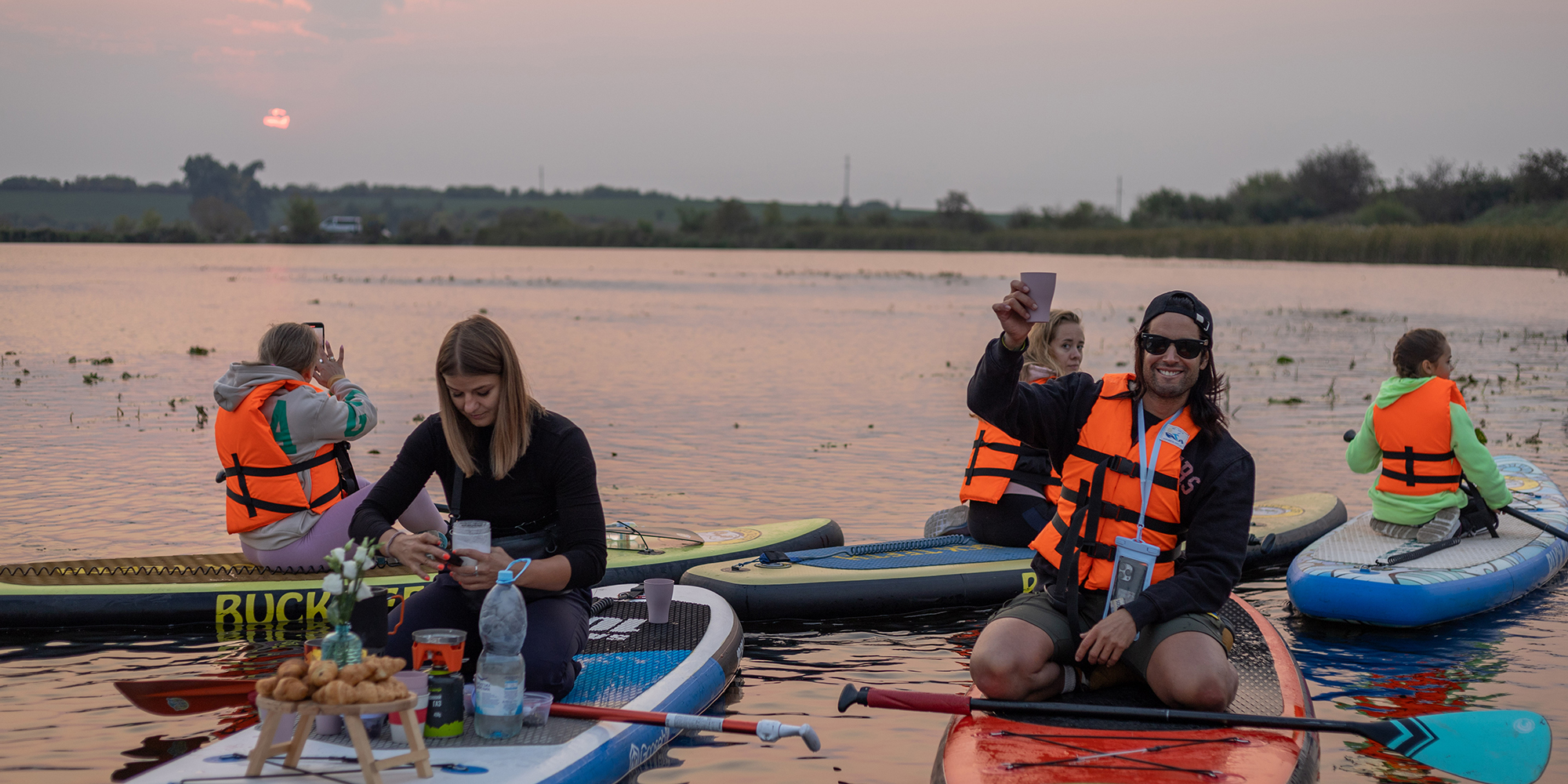 Зустріч світанку проходить у групі з 4-10 осіб, тому ви зможете побачити одне з найбільш видовищних природних явищ в особливому місці з друзями чи однодумцями. Ви не обмежені часом в 4 хв, а це час який зазвичай триває світанок, адже цей ранок на воді на SUP board може тривати кілька годин, даруючи вам багато спілкування, спостережень і яскравих емоцій. Це ідеальний сценарій для надихаючого ранку, чи не так?