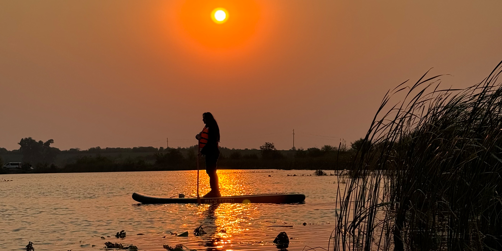 А тепер — про магію. Уяви: ти стоїш посеред озера або річки, довкола тиша, небо ніжно рожевіє, а в руках — гаряча кава й улюблений смаколик. Світанок на SUP-дошці — це не просто прогулянка, це маленьке диво. Найчастіше ми зустрічаємо сонце на озері в селі Кустин, але можемо вирушити туди, де краще видно схід і є простір для веслування.